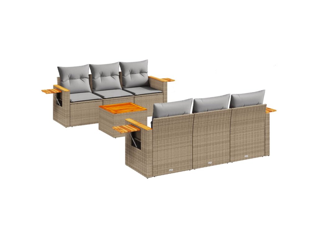 vidaXL 7-dielna záhradná sedacia súprava a vankúše béžová polyratan