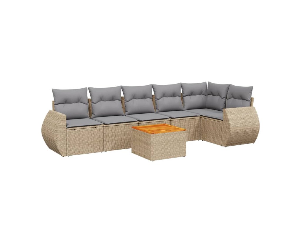 vidaXL 7-dielna záhradná sedacia súprava a vankúše béžová polyratan