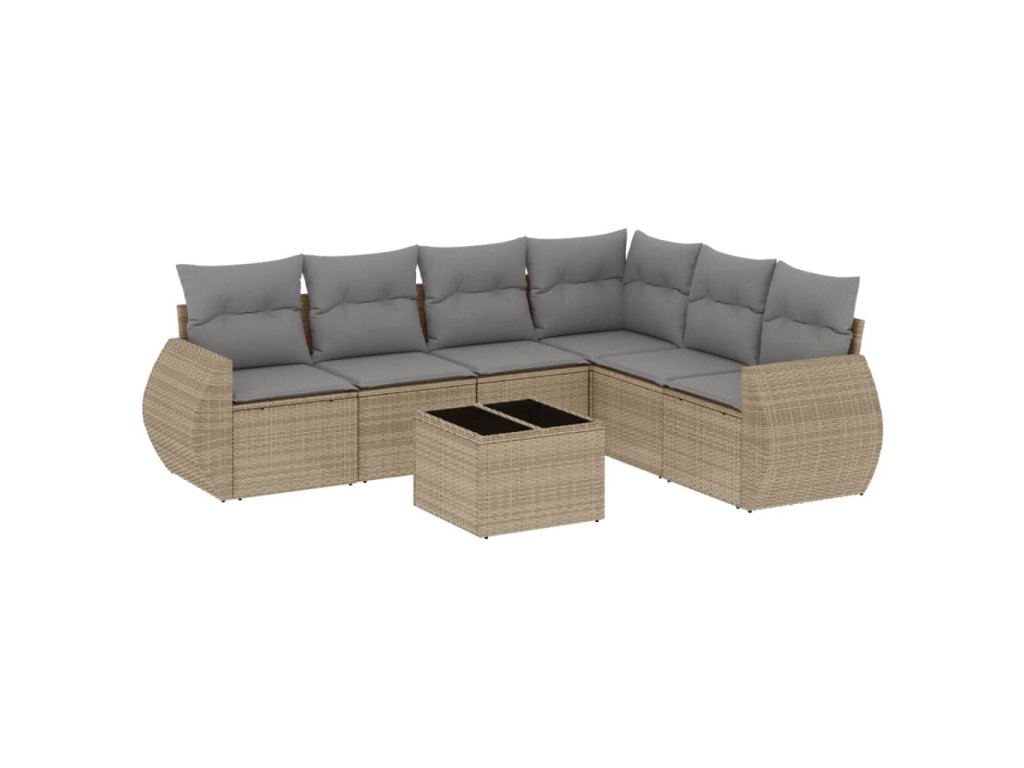 vidaXL 7-dielna záhradná sedacia súprava a vankúše béžová polyratan