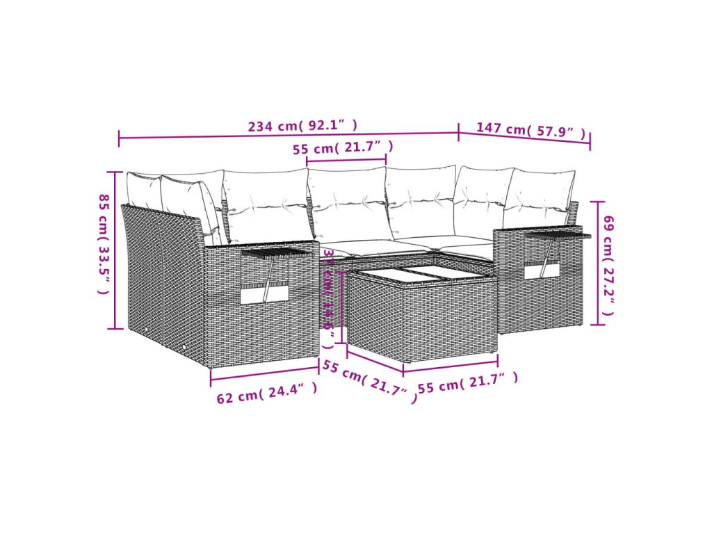 vidaXL 7-dielna záhradná sedacia súprava a vankúše béžová polyratan