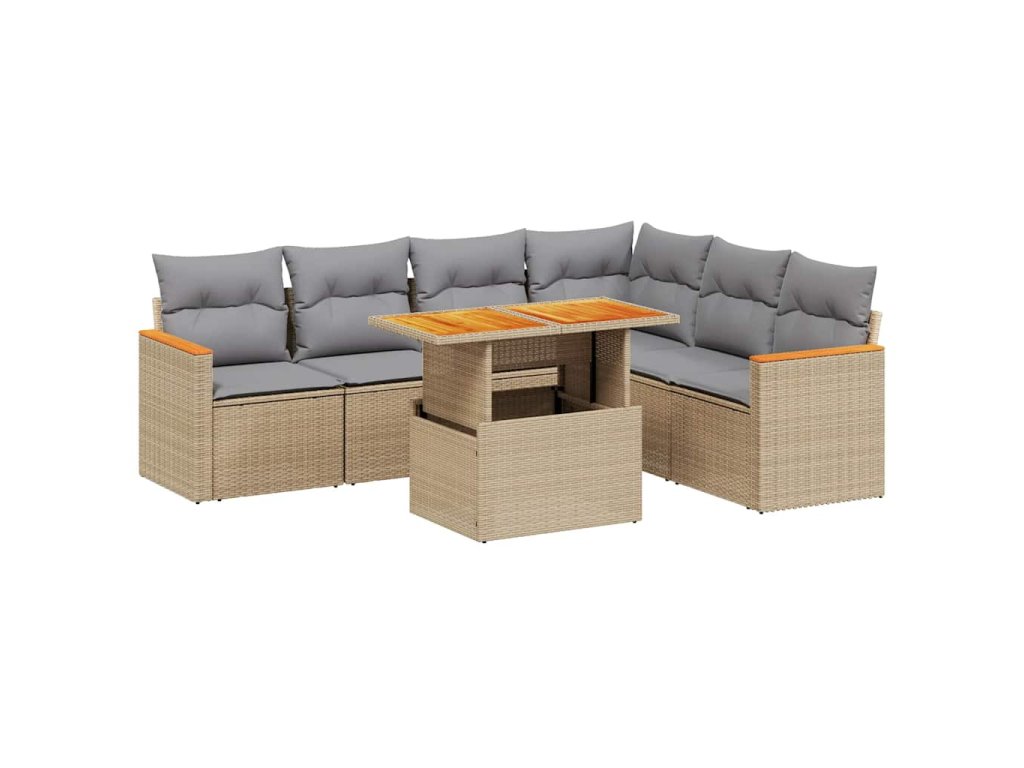 vidaXL 7-dielna záhradná sedacia súprava a vankúše béžová polyratan