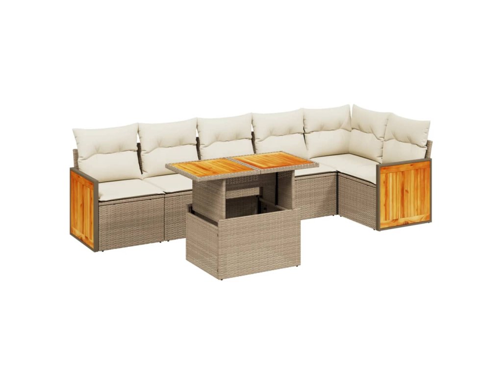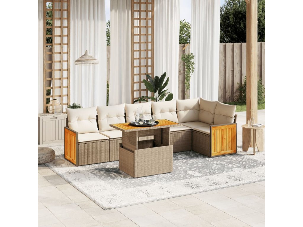 vidaXL 7-dielna záhradná sedacia súprava a vankúše béžová polyratan