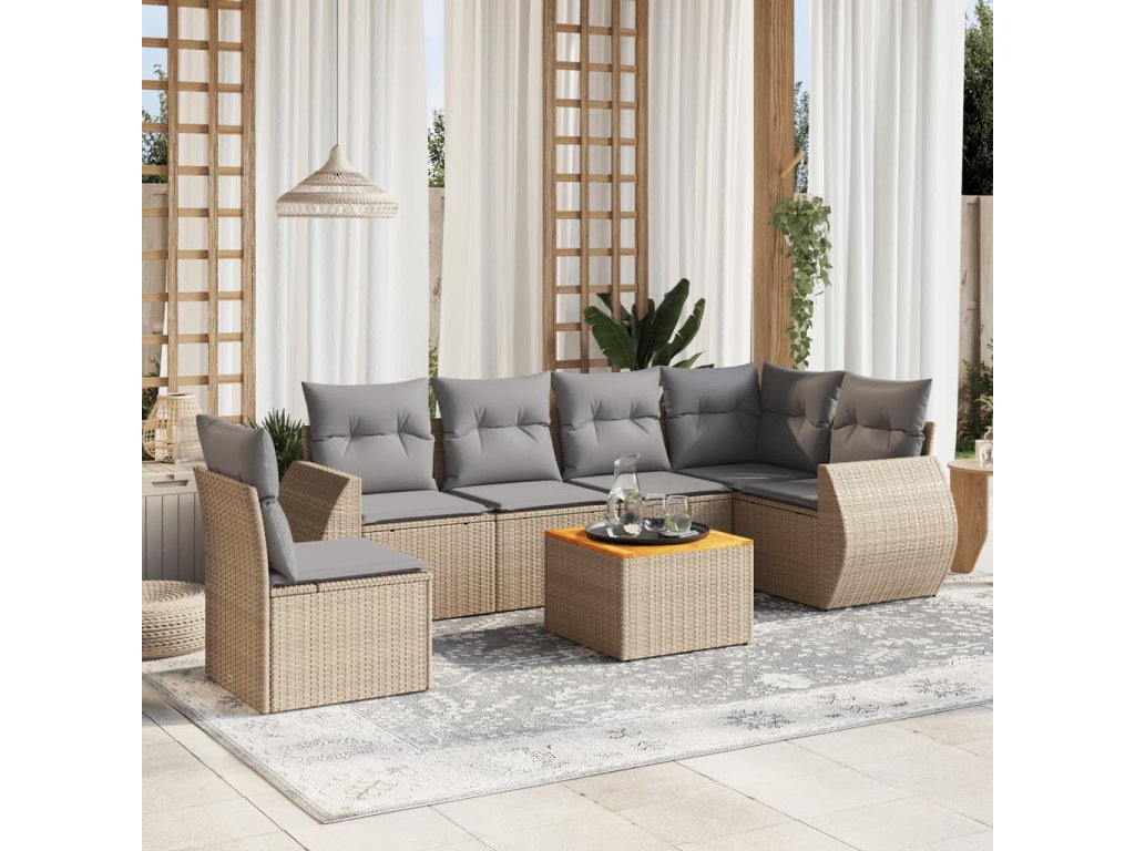 vidaXL 7-dielna záhradná sedacia súprava a vankúše béžová polyratan
