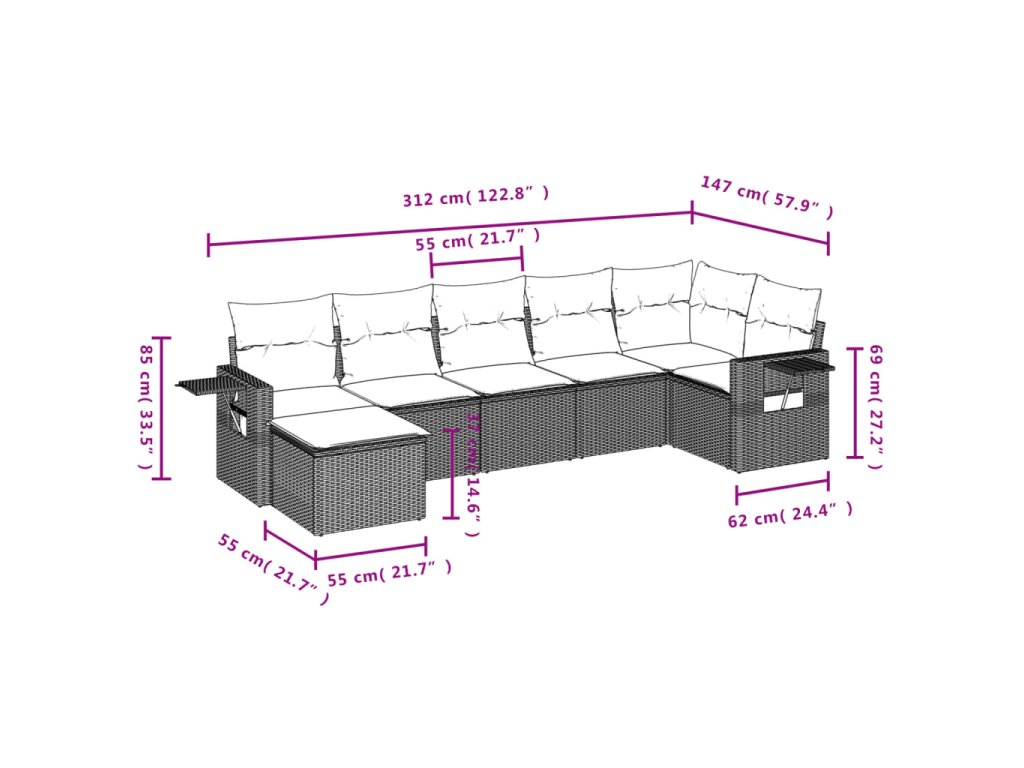 vidaXL 7-dielna záhradná sedacia súprava a vankúše béžová polyratan