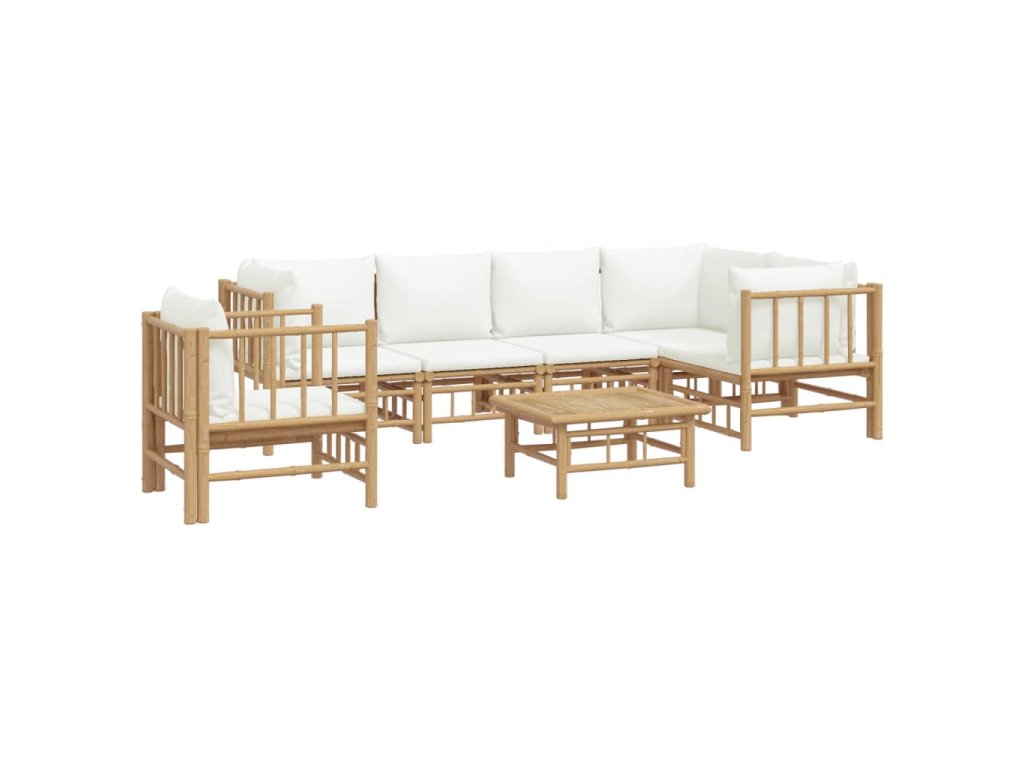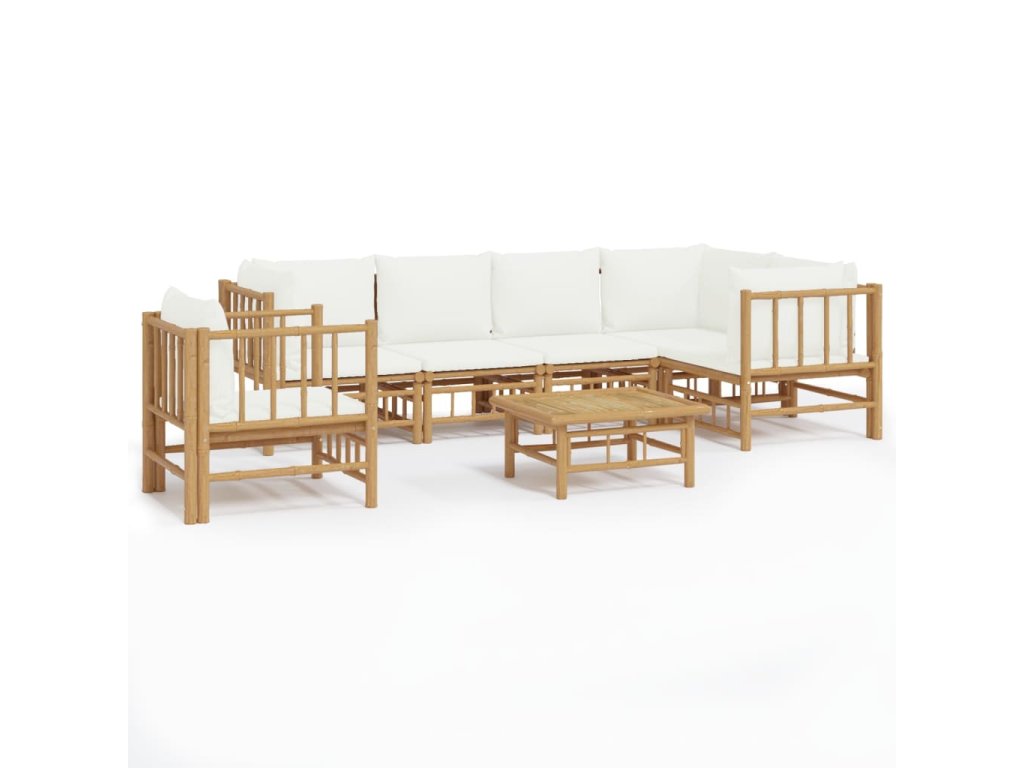 vidaXL 7-dielna záhradná sedacia súprava krémovobiele vankúše bambus