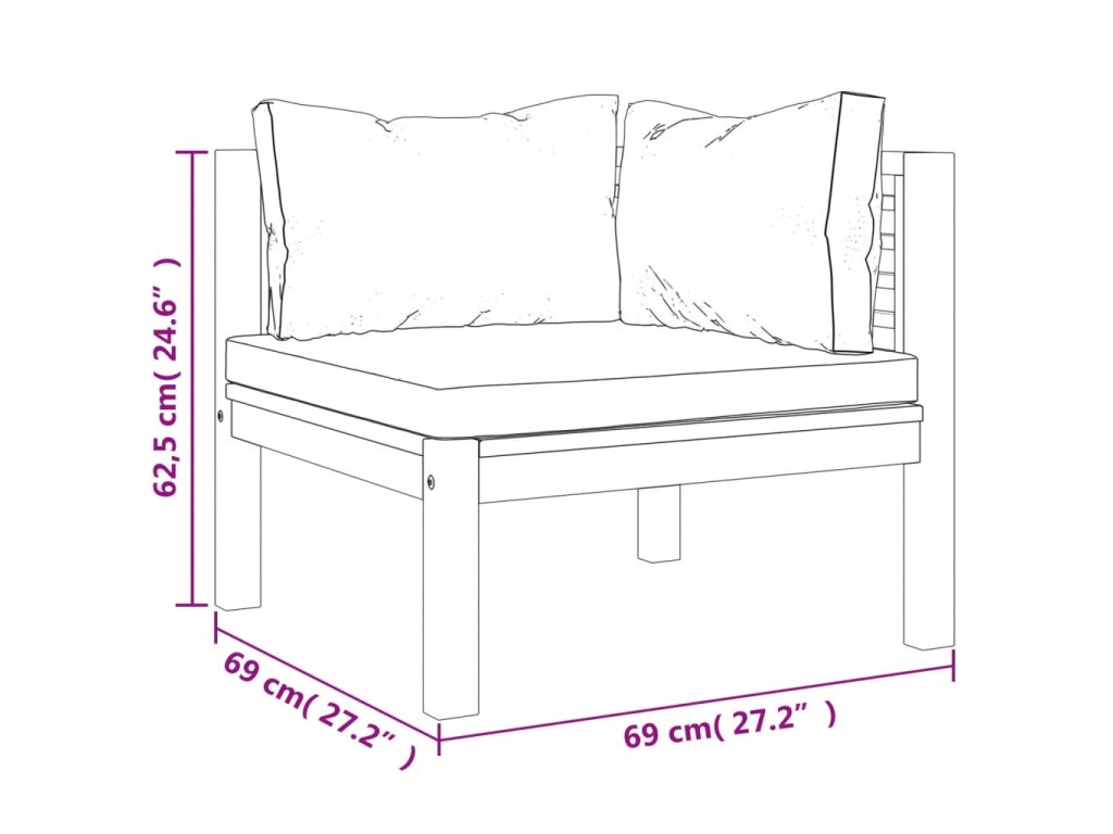 - Rozmery rohovej sedačky: 69 x 69 x 62,5 cm (Š x H x V)