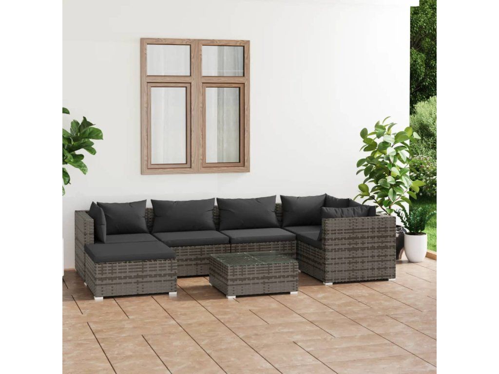 vidaXL 7-dielna záhradná sedacia súprava s podložkami polyratan sivá