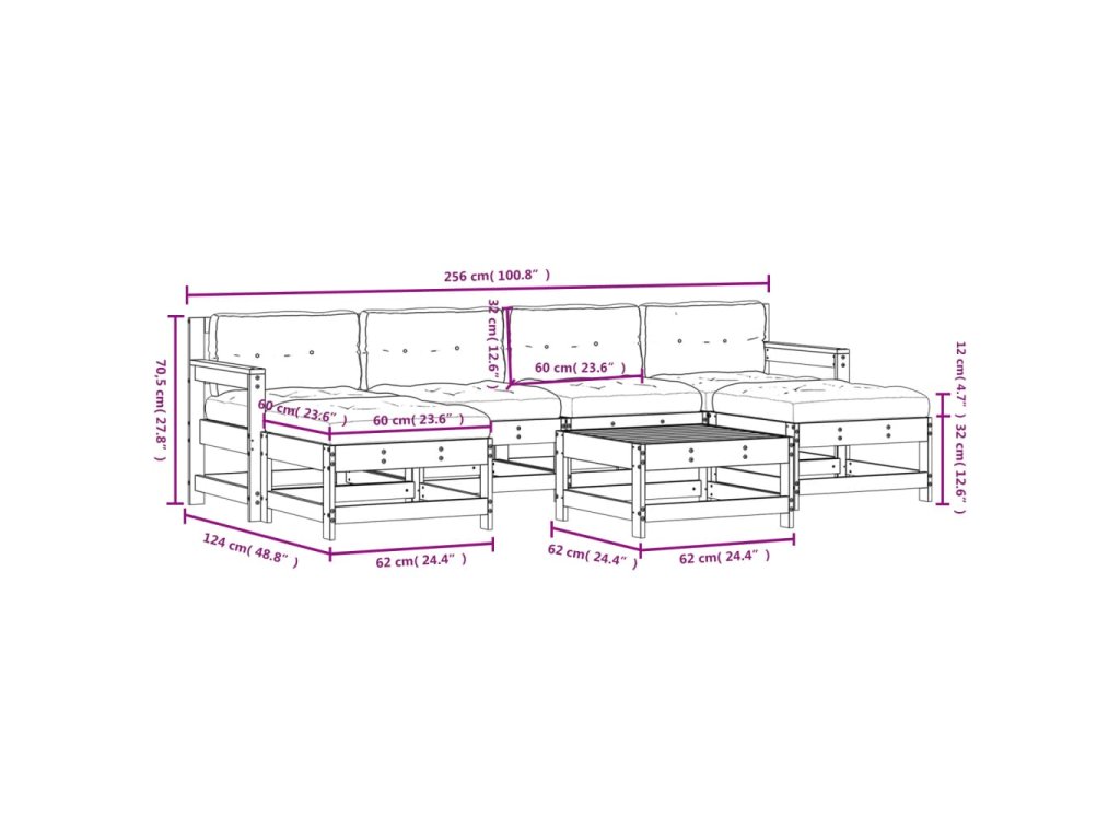 - Rozmery stredovej pohovky: 62 x 62 x 70,5 cm (D x Š x V)