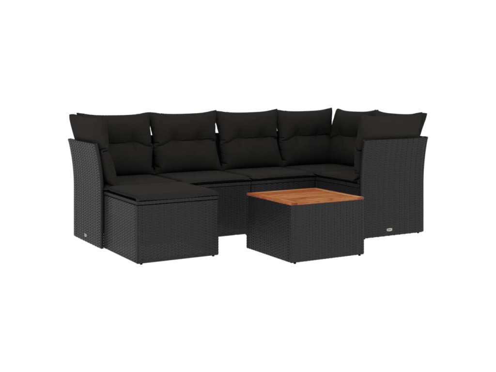 vidaXL 7-dielna záhradná súprava pohoviek s vankúšmi čierna polyratan