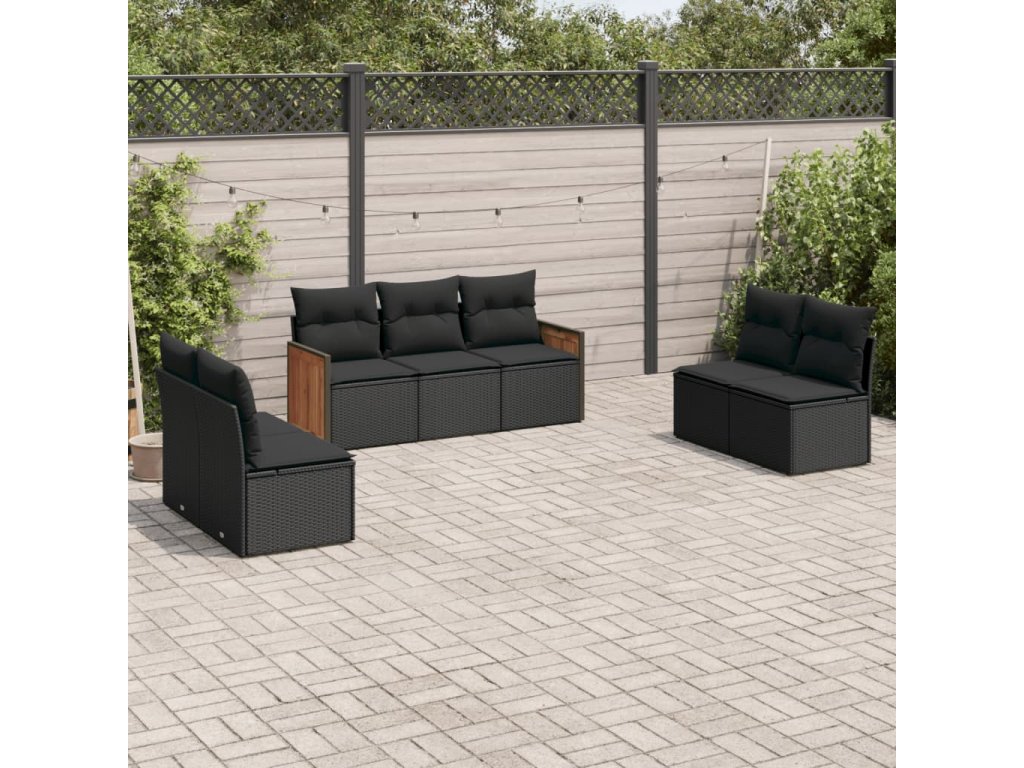 vidaXL 7-dielna záhradná súprava pohoviek s vankúšmi čierna polyratan
