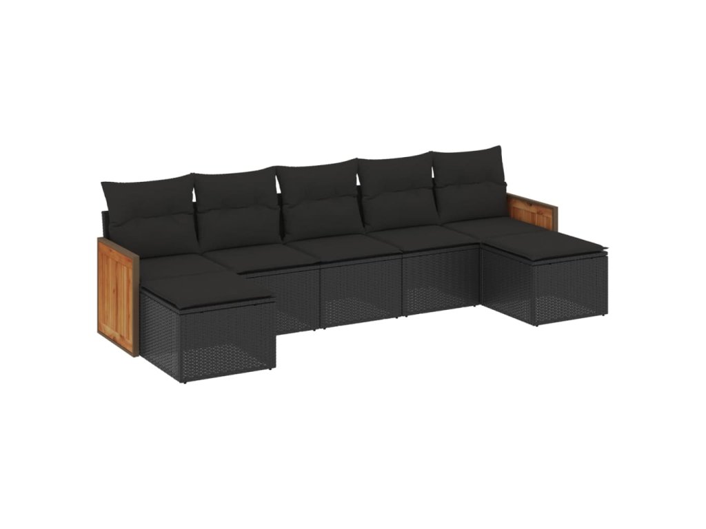 vidaXL 7-dielna záhradná súprava pohoviek s vankúšmi čierna polyratan