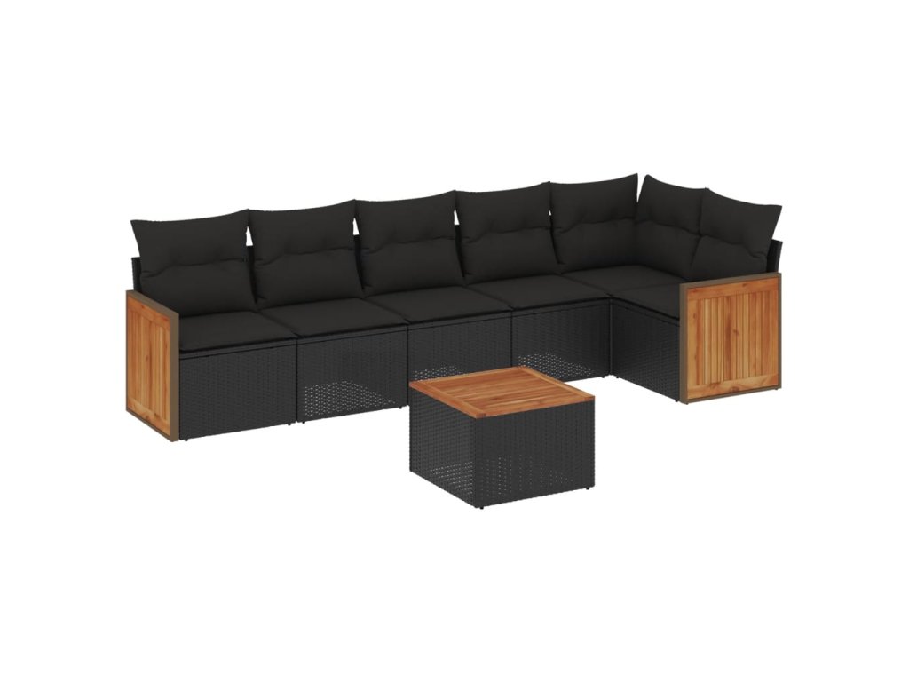 vidaXL 7-dielna záhradná súprava pohoviek s vankúšmi čierna polyratan
