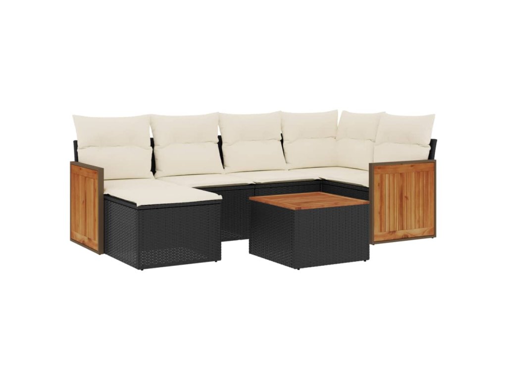 vidaXL 7-dielna záhradná súprava pohoviek s vankúšmi čierna polyratan
