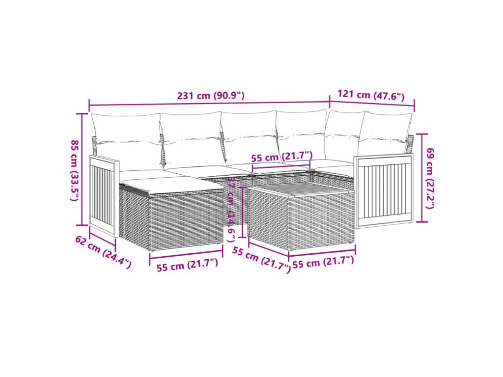 - Modulárny dizajn: Táto súprava vonkajšieho nábytku má modulárny dizajn, vďaka čomu je úplne flexibilná a ľahko sa premiestňuje, takže si môžete vytvoriť prispôsobené usporiadanie vonkajšieho nábytku.