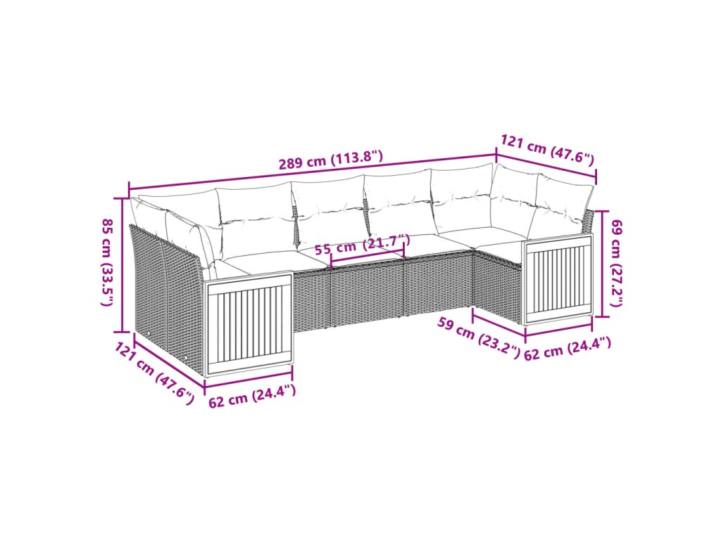vidaXL 7-dielna záhradná súprava pohoviek s vankúšmi čierna polyratan