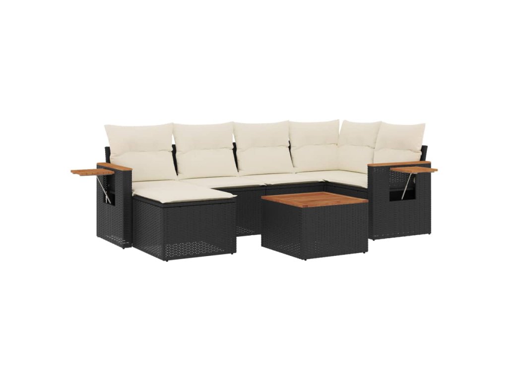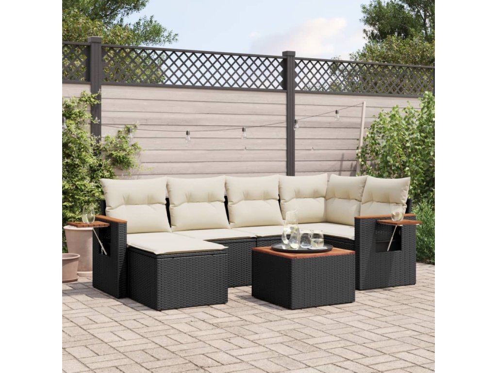 vidaXL 7-dielna záhradná súprava pohoviek s vankúšmi čierna polyratan