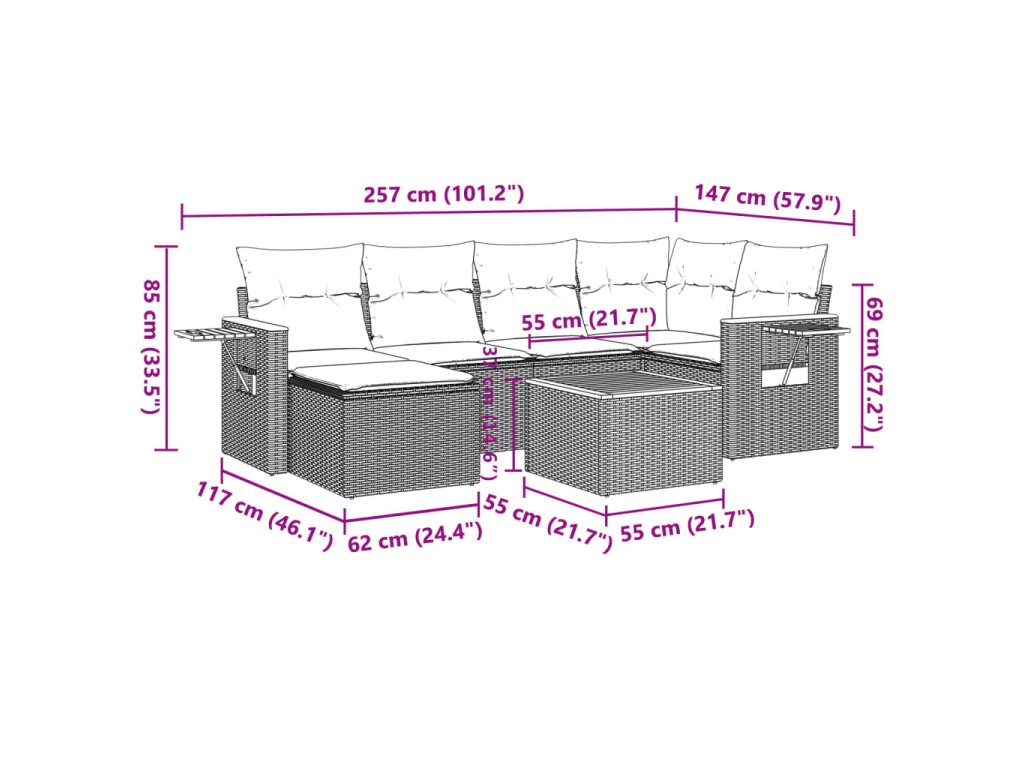 - Modulárny dizajn: Táto súprava vonkajšieho nábytku má modulárny dizajn, vďaka čomu je úplne flexibilná a ľahko sa premiestňuje, takže si môžete vytvoriť prispôsobené usporiadanie vonkajšieho nábytku.
