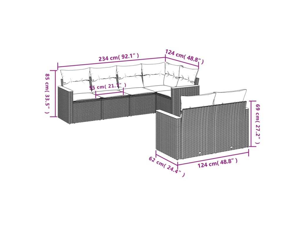vidaXL 7-dielna záhradná súprava pohoviek s vankúšmi čierna polyratan
