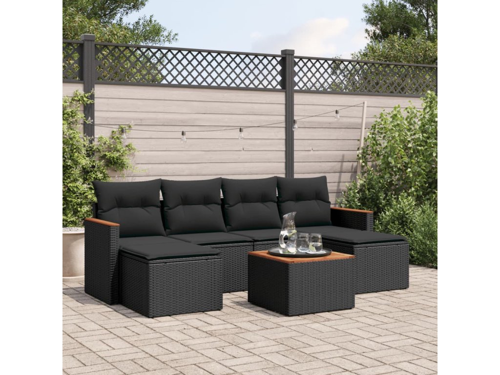 vidaXL 7-dielna záhradná súprava pohoviek s vankúšmi čierna polyratan