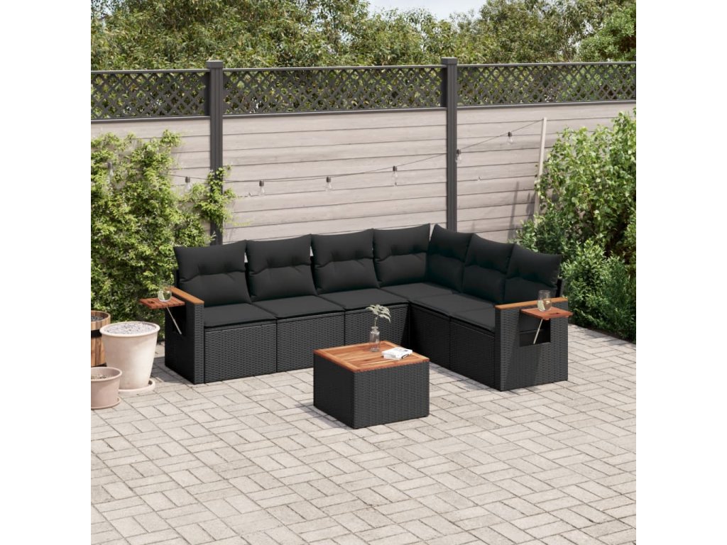 vidaXL 7-dielna záhradná súprava pohoviek s vankúšmi čierna polyratan