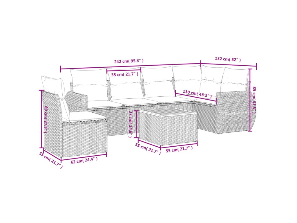 - Modulárny dizajn: Táto súprava vonkajšieho nábytku má modulárny dizajn, vďaka čomu je úplne flexibilná a ľahko sa premiestňuje, takže si môžete vytvoriť prispôsobené usporiadanie vonkajšieho nábytku.