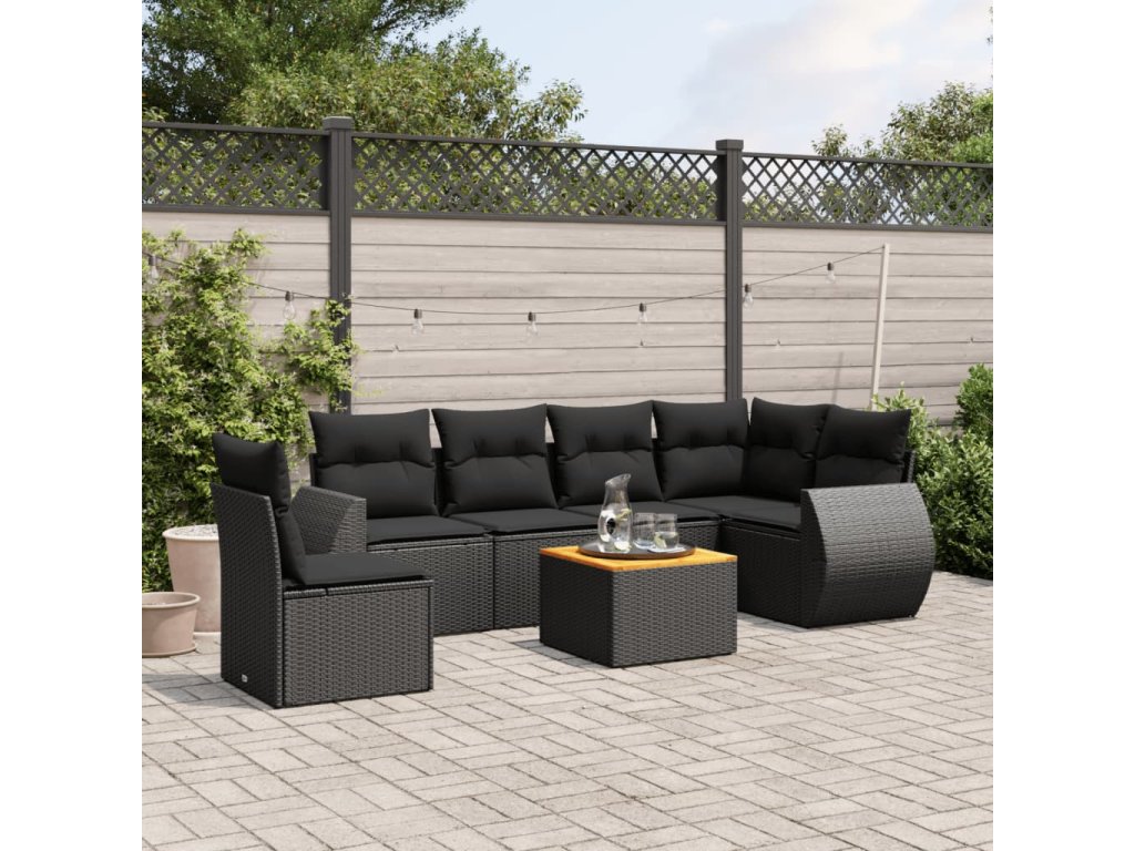 vidaXL 7-dielna záhradná súprava pohoviek s vankúšmi čierna polyratan