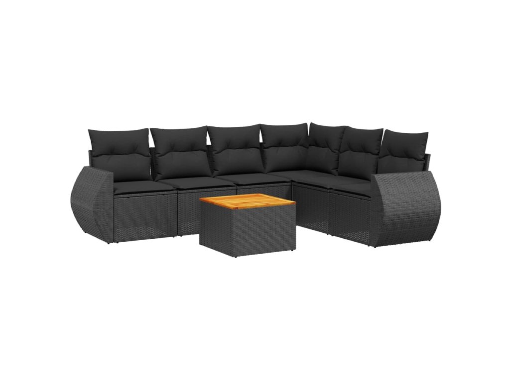 vidaXL 7-dielna záhradná súprava pohoviek s vankúšmi čierna polyratan