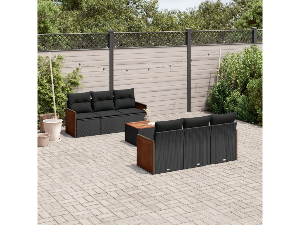 vidaXL 7-dielna záhradná súprava pohoviek s vankúšmi čierna polyratan