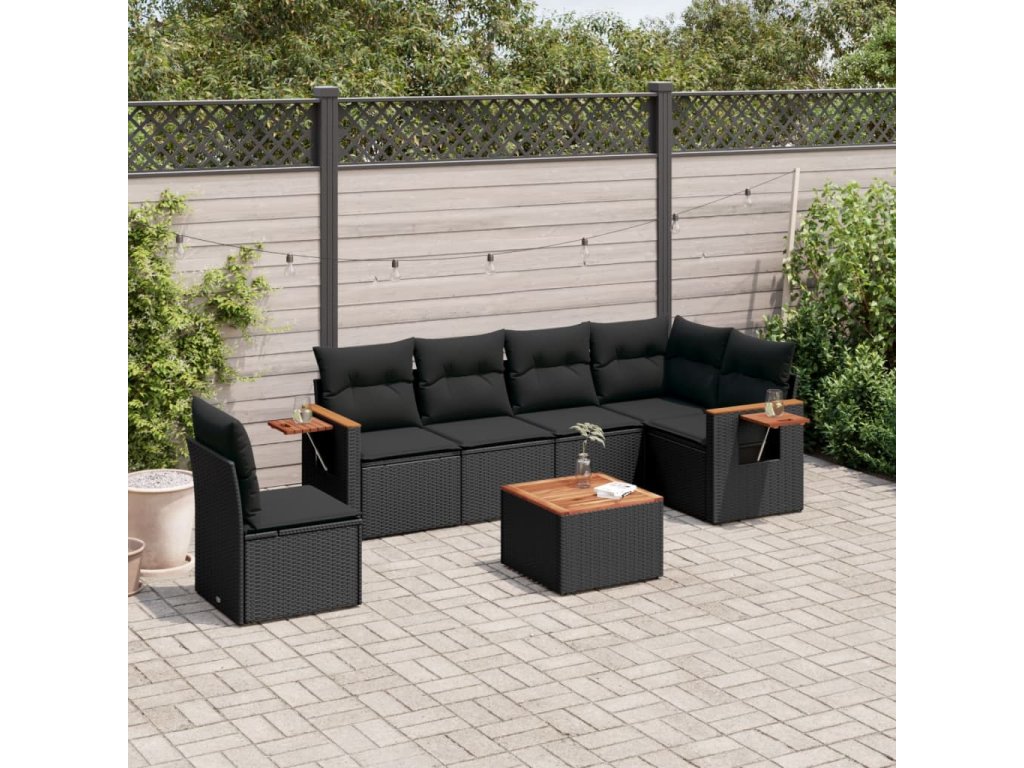 vidaXL 7-dielna záhradná súprava pohoviek s vankúšmi čierna polyratan