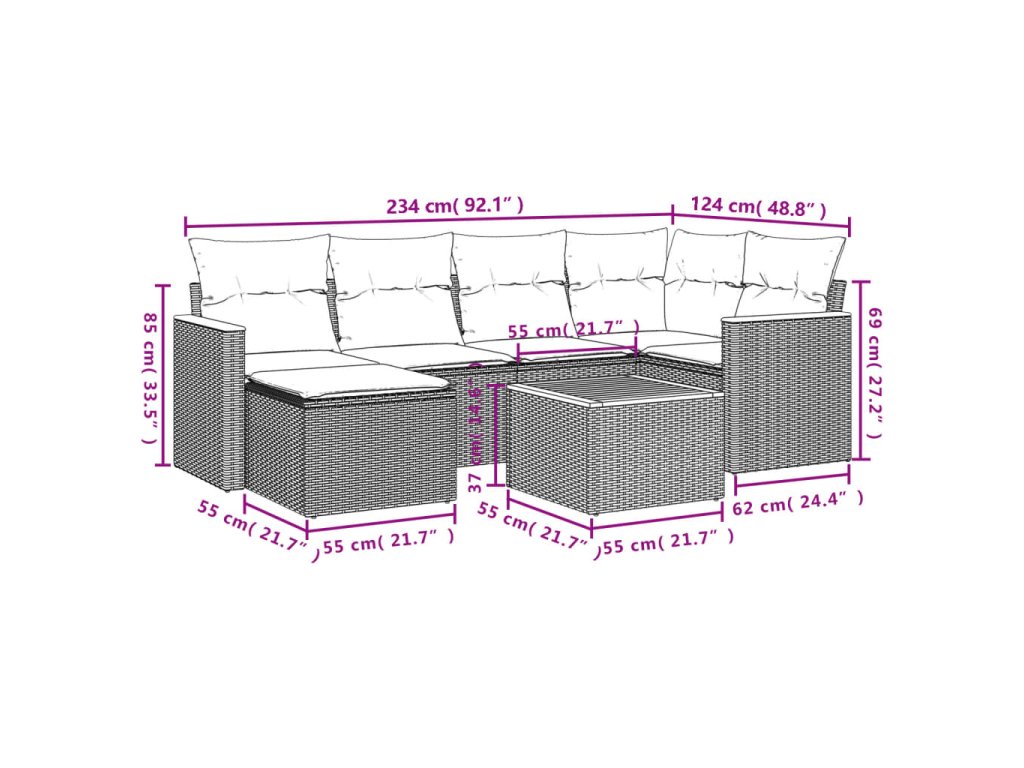 vidaXL 7-dielna záhradná súprava pohoviek s vankúšmi čierna polyratan