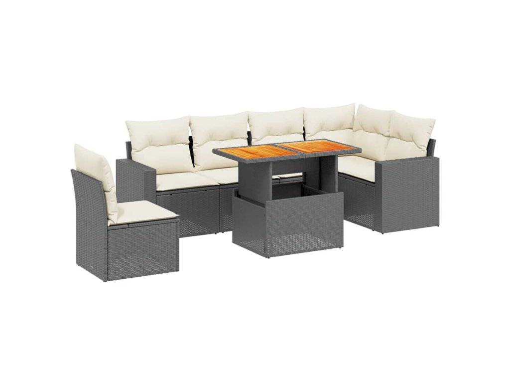 vidaXL 7-dielna záhradná súprava pohoviek s vankúšmi čierna polyratan