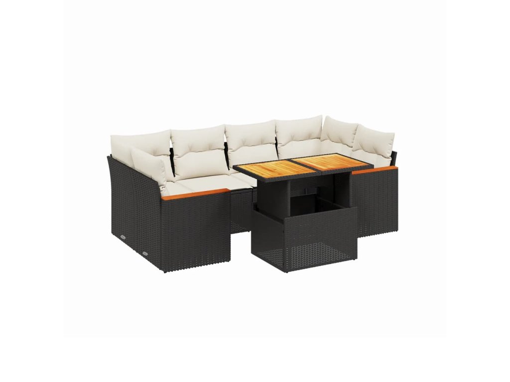 vidaXL 7-dielna záhradná súprava pohoviek s vankúšmi čierna polyratan