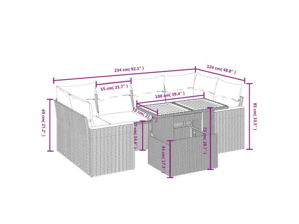 - Modulárny dizajn: Táto súprava vonkajšieho nábytku má modulárny dizajn, vďaka čomu je úplne flexibilná a ľahko sa premiestňuje, takže si môžete vytvoriť prispôsobené usporiadanie vonkajšieho nábytku.