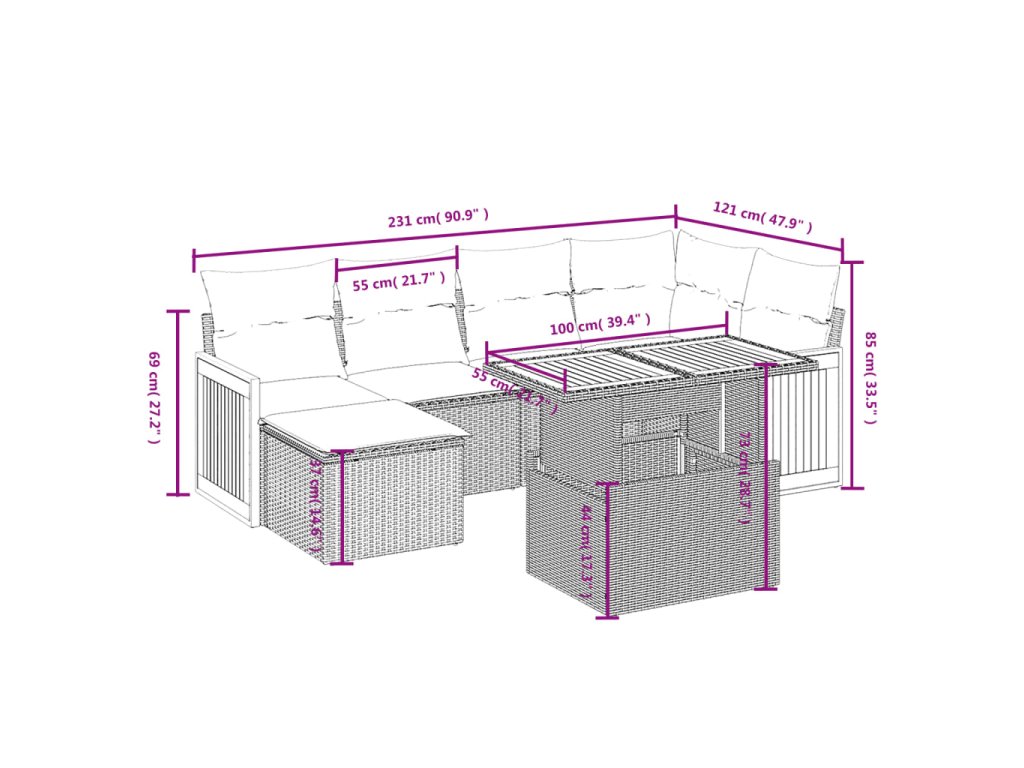 - Modulárny dizajn: Táto súprava vonkajšieho nábytku má modulárny dizajn, vďaka čomu je úplne flexibilná a ľahko sa premiestňuje, takže si môžete vytvoriť prispôsobené usporiadanie vonkajšieho nábytku.