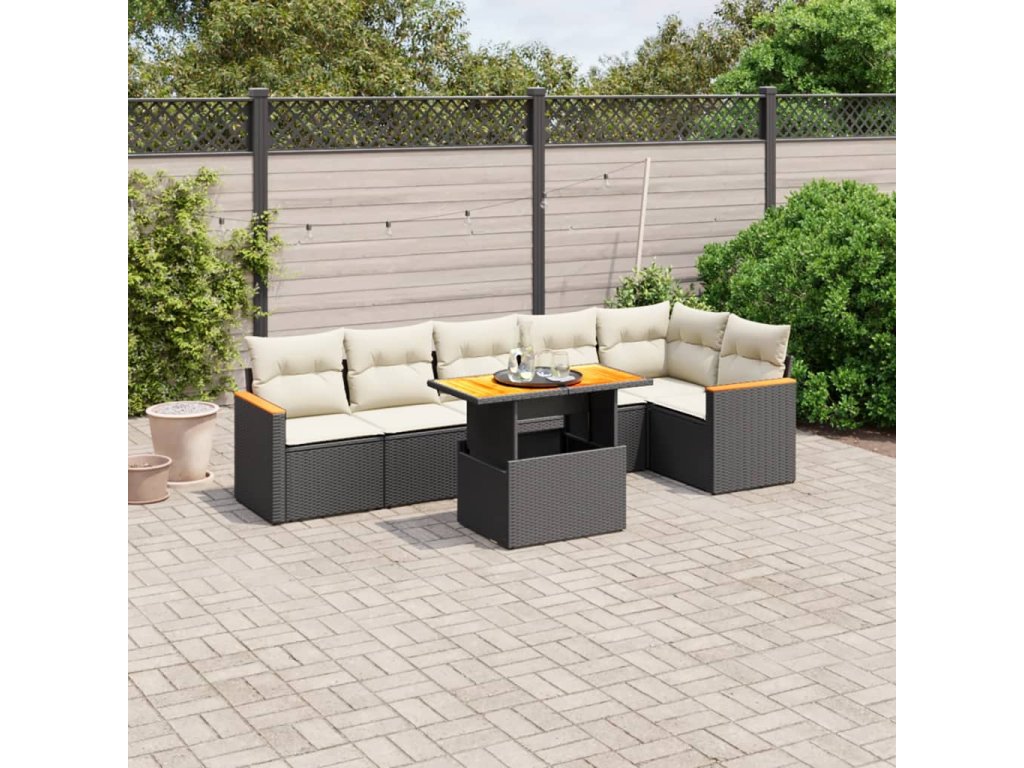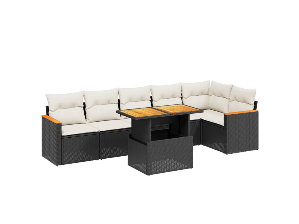 vidaXL 7-dielna záhradná súprava pohoviek s vankúšmi čierna polyratan