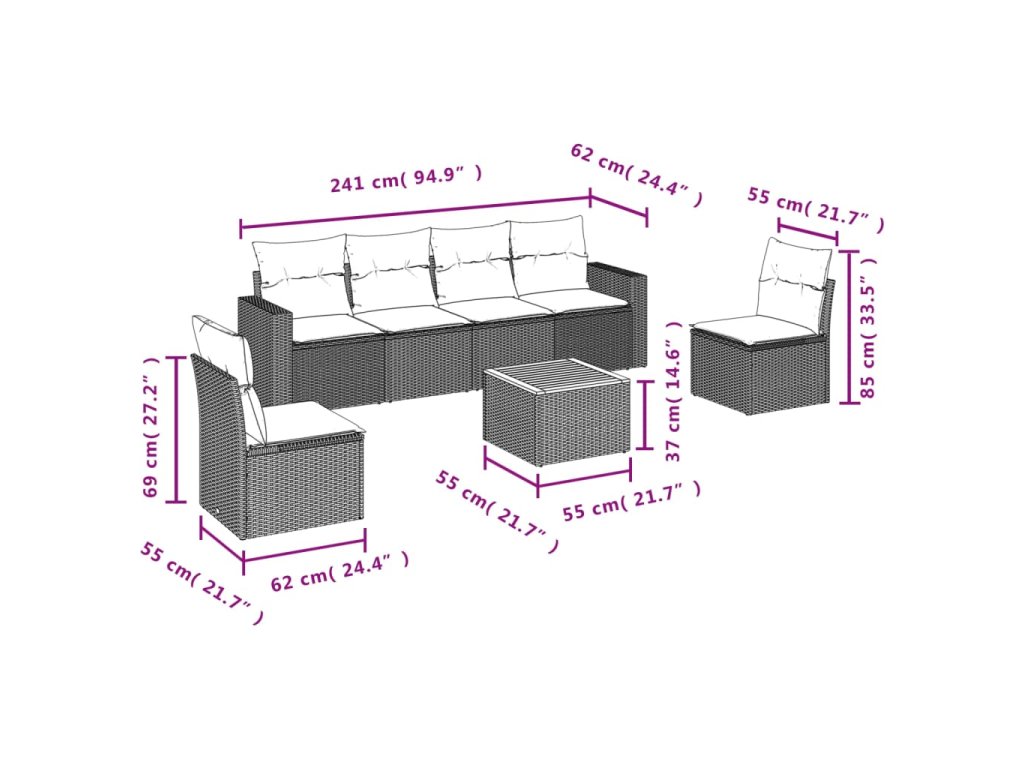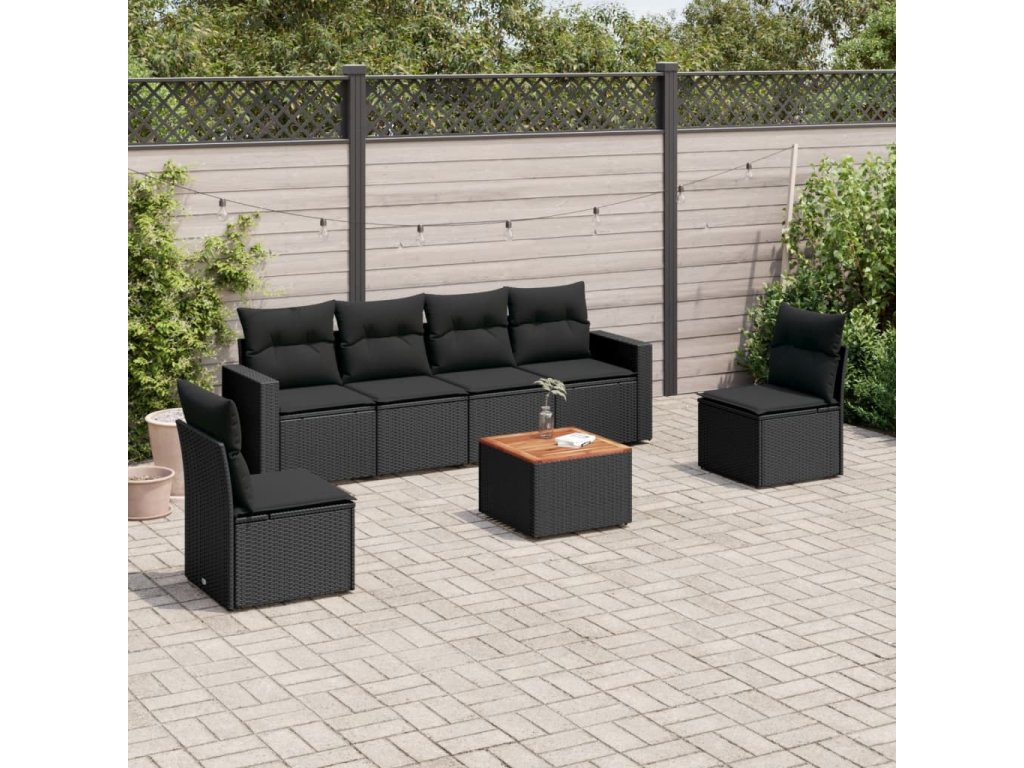 vidaXL 7-dielna záhradná súprava pohoviek s vankúšmi čierna polyratan
