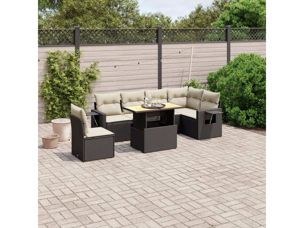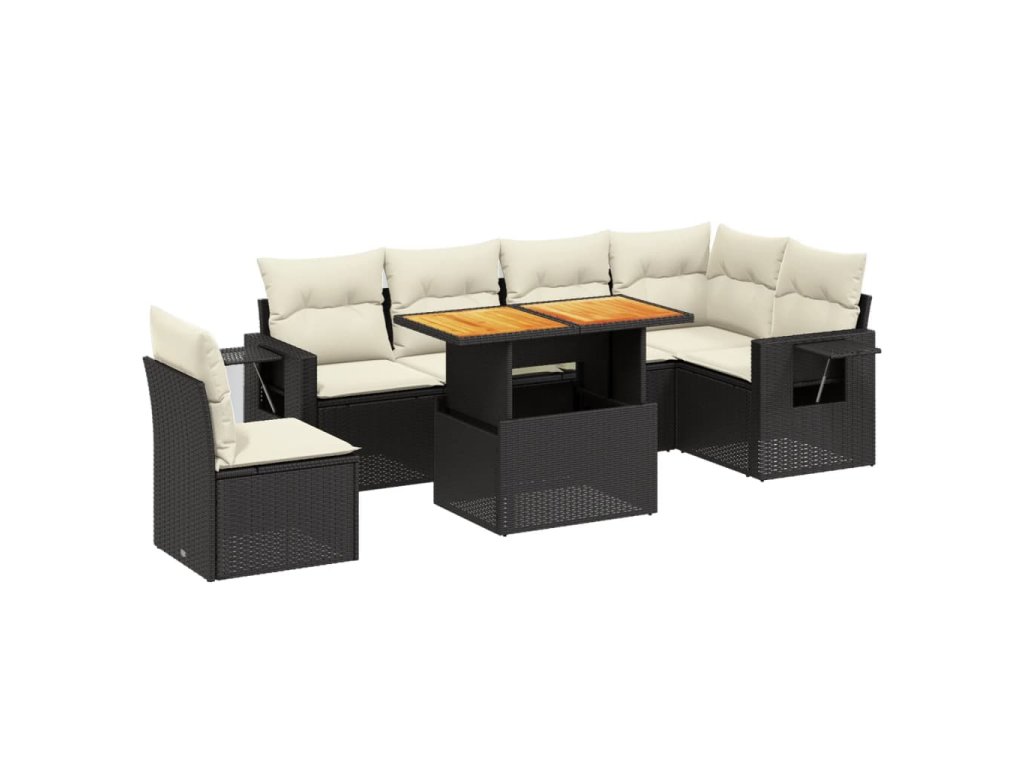 vidaXL 7-dielna záhradná súprava pohoviek s vankúšmi čierna polyratan