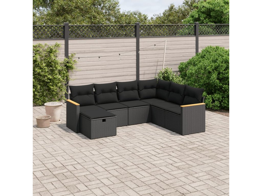 vidaXL 7-dielna záhradná súprava pohoviek s vankúšmi čierna polyratan