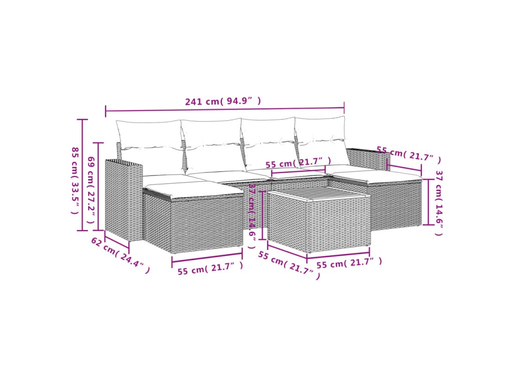 vidaXL 7-dielna záhradná súprava pohoviek s vankúšmi čierna polyratan