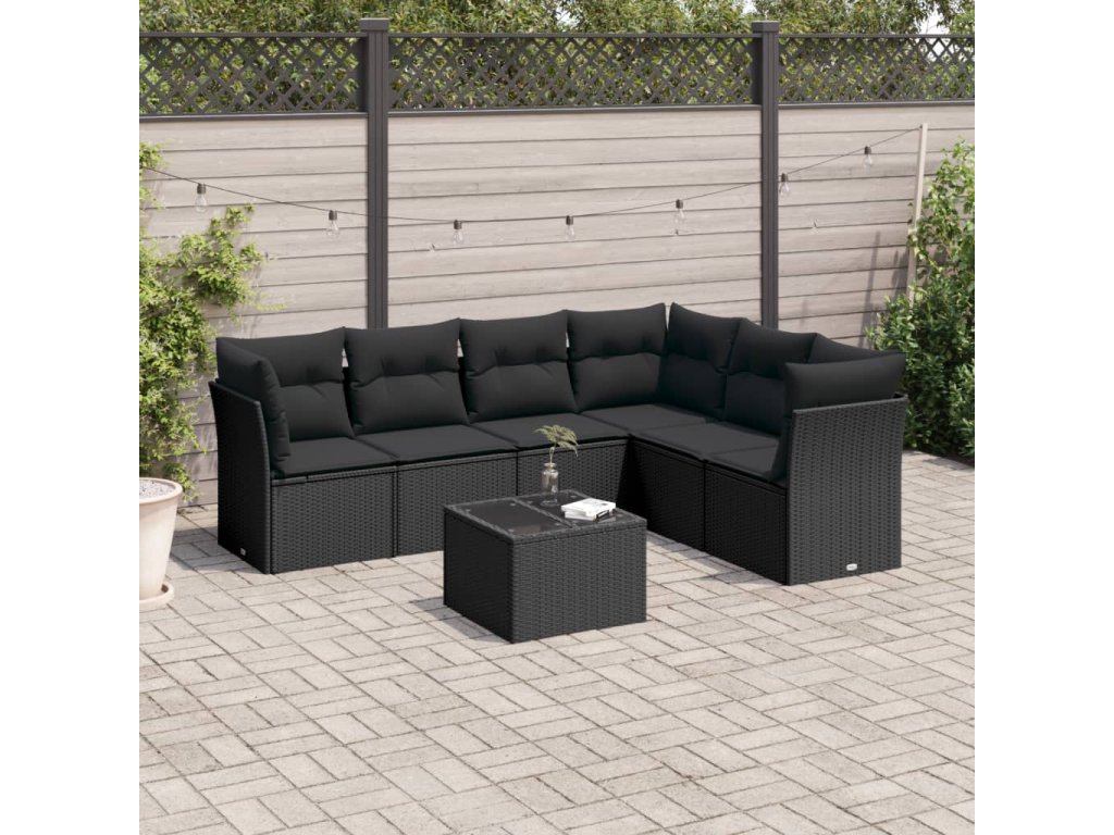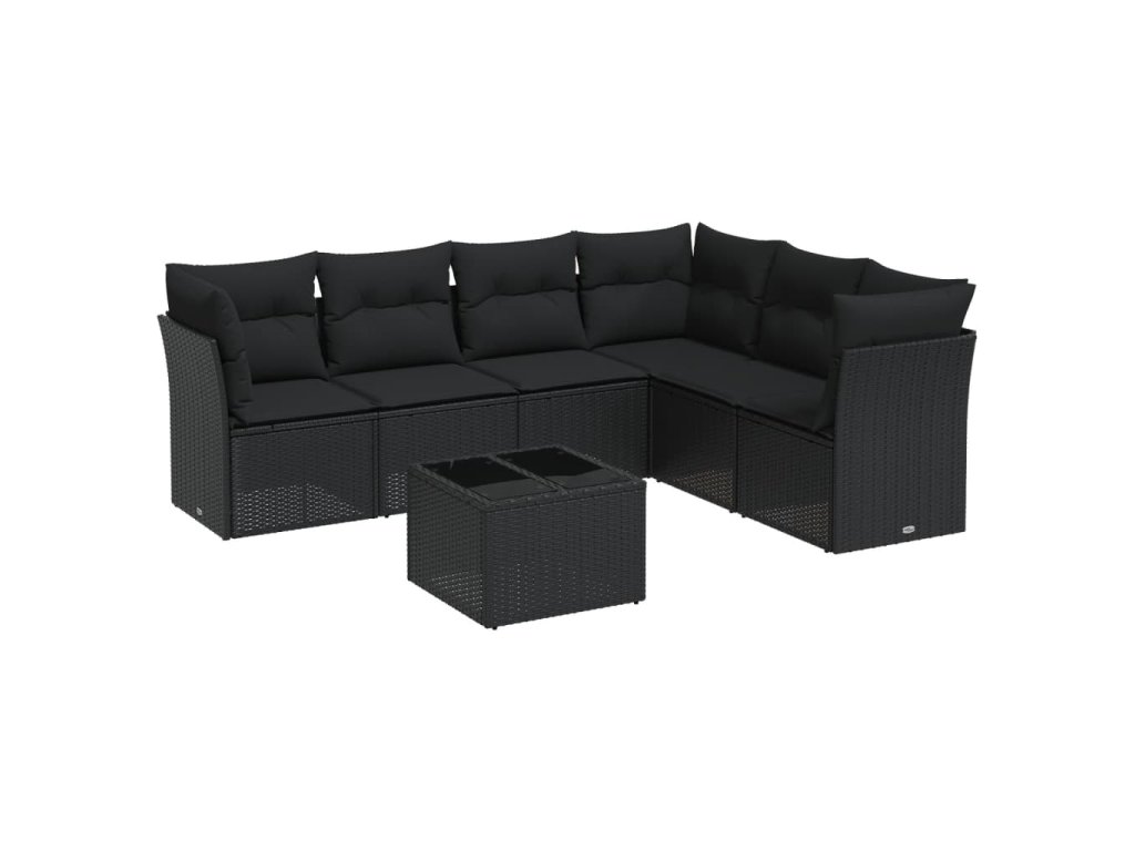 vidaXL 7-dielna záhradná súprava pohoviek s vankúšmi čierna polyratan