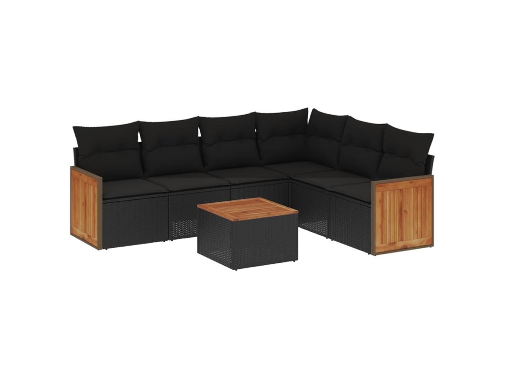 vidaXL 7-dielna záhradná súprava pohoviek s vankúšmi čierna polyratan