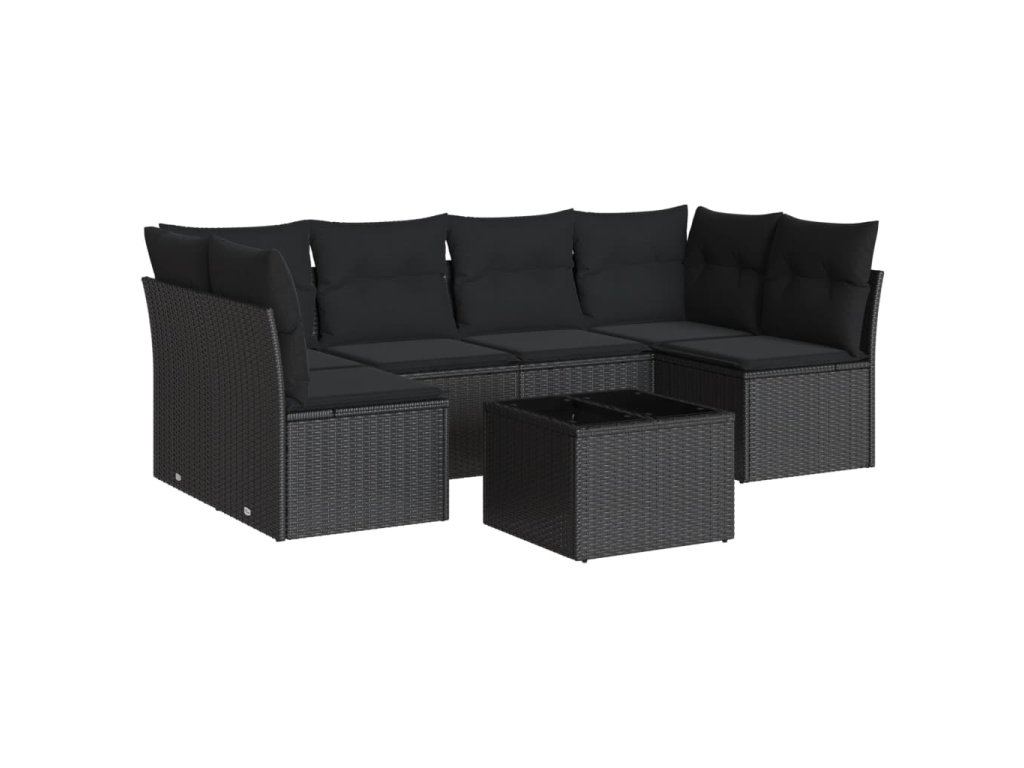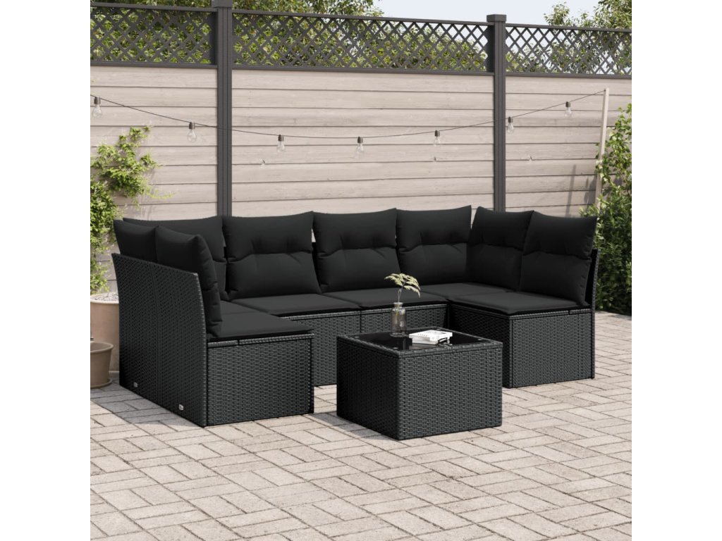 vidaXL 7-dielna záhradná súprava pohoviek s vankúšmi čierna polyratan