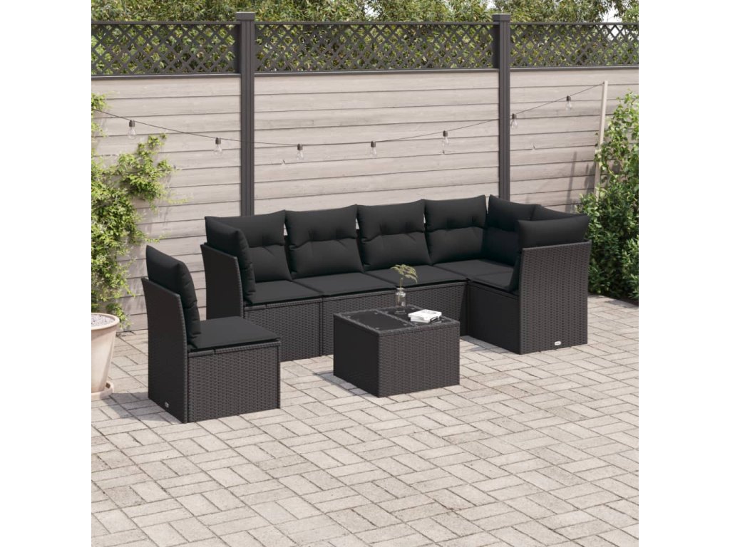 vidaXL 7-dielna záhradná súprava pohoviek s vankúšmi čierna polyratan
