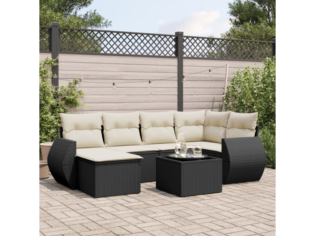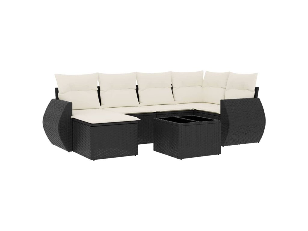 vidaXL 7-dielna záhradná súprava pohoviek s vankúšmi čierna polyratan