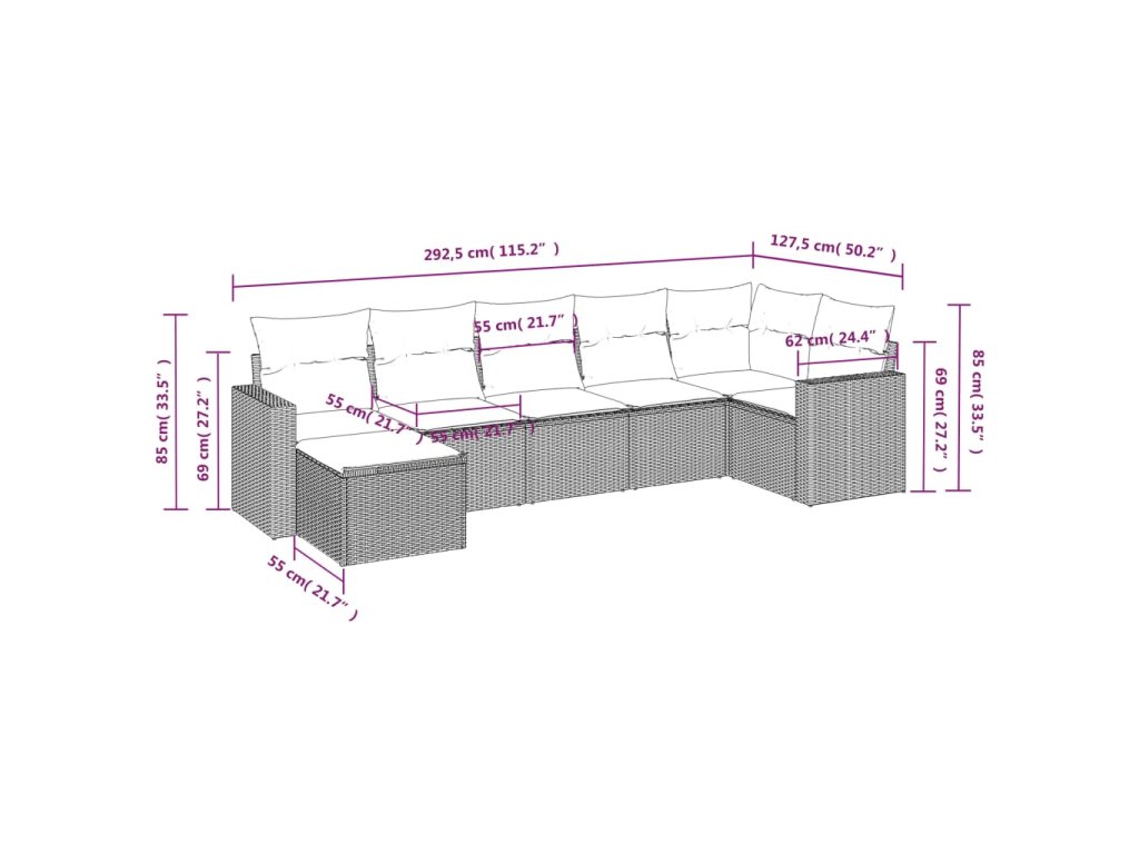 vidaXL 7-dielna záhradná súprava pohoviek s vankúšmi čierna polyratan
