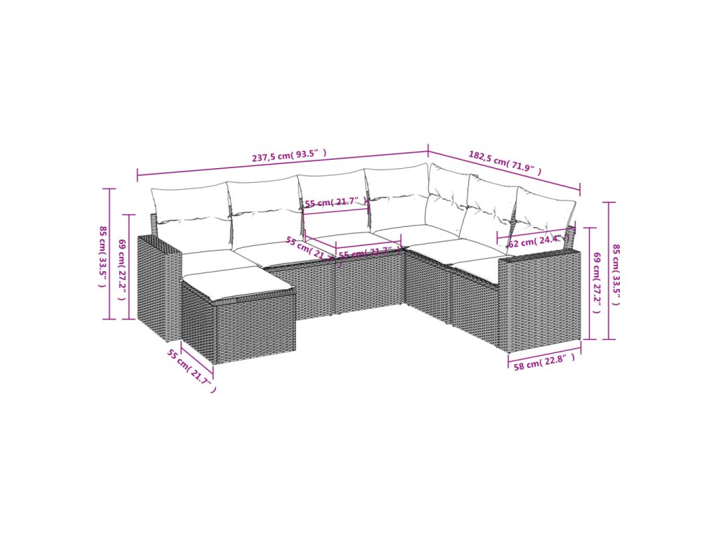 vidaXL 7-dielna záhradná súprava pohoviek s vankúšmi čierna polyratan
