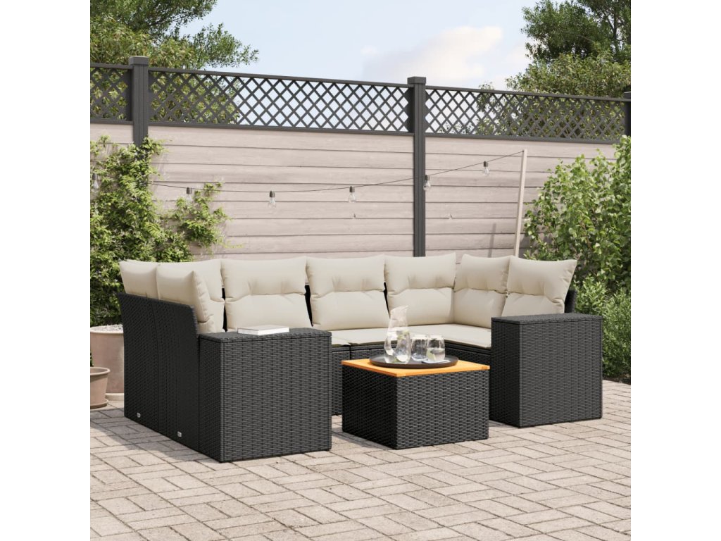 vidaXL 7-dielna záhradná súprava pohoviek s vankúšmi čierna polyratan