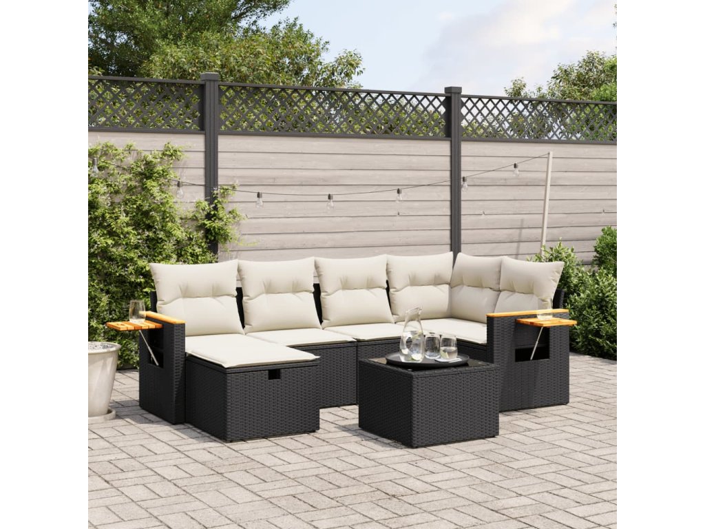 vidaXL 7-dielna záhradná súprava pohoviek s vankúšmi čierna polyratan