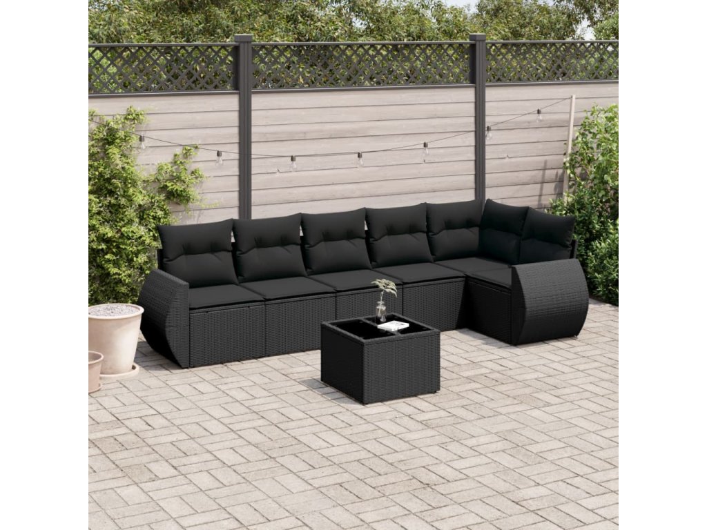 vidaXL 7-dielna záhradná súprava pohoviek s vankúšmi čierna polyratan