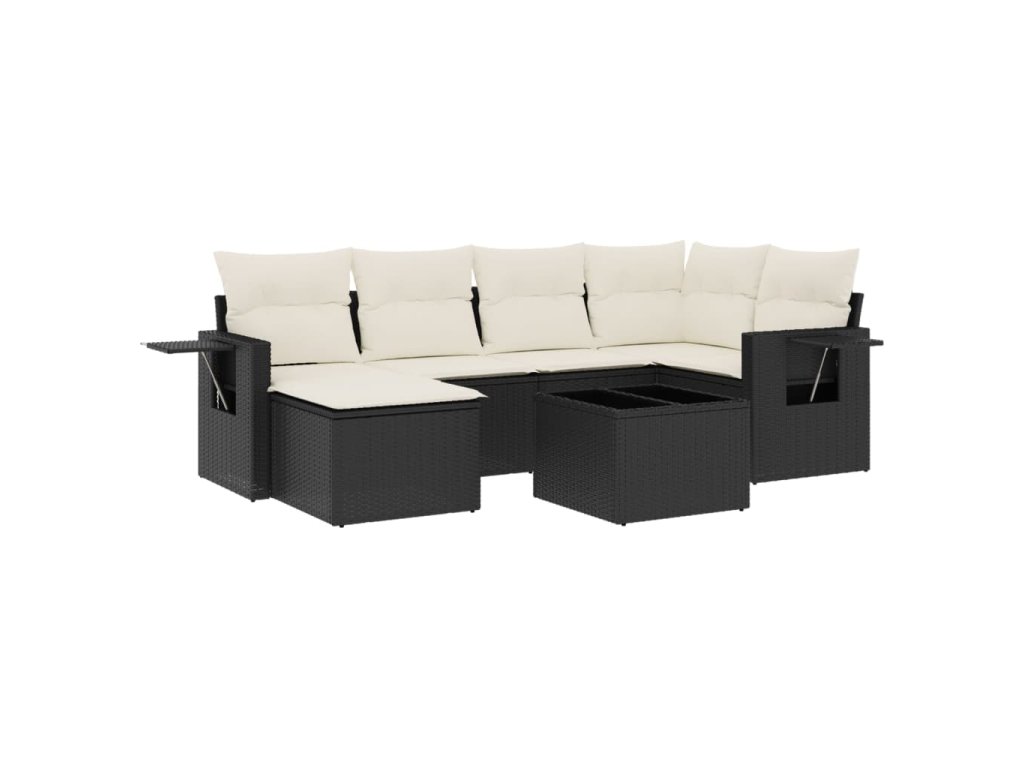 vidaXL 7-dielna záhradná súprava pohoviek s vankúšmi čierna polyratan